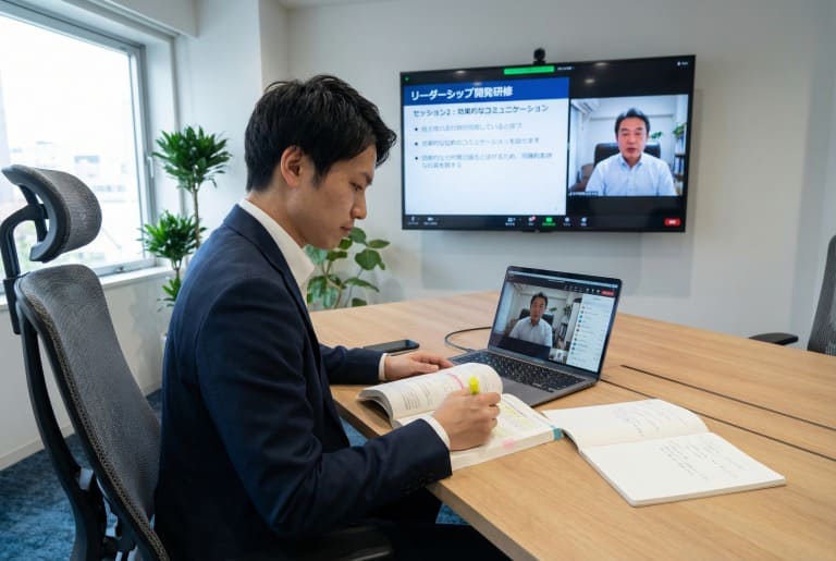 先輩社員による社内研修、外部講師による集合研修、またコロナ禍以降はオンライン研修も普及してきました。