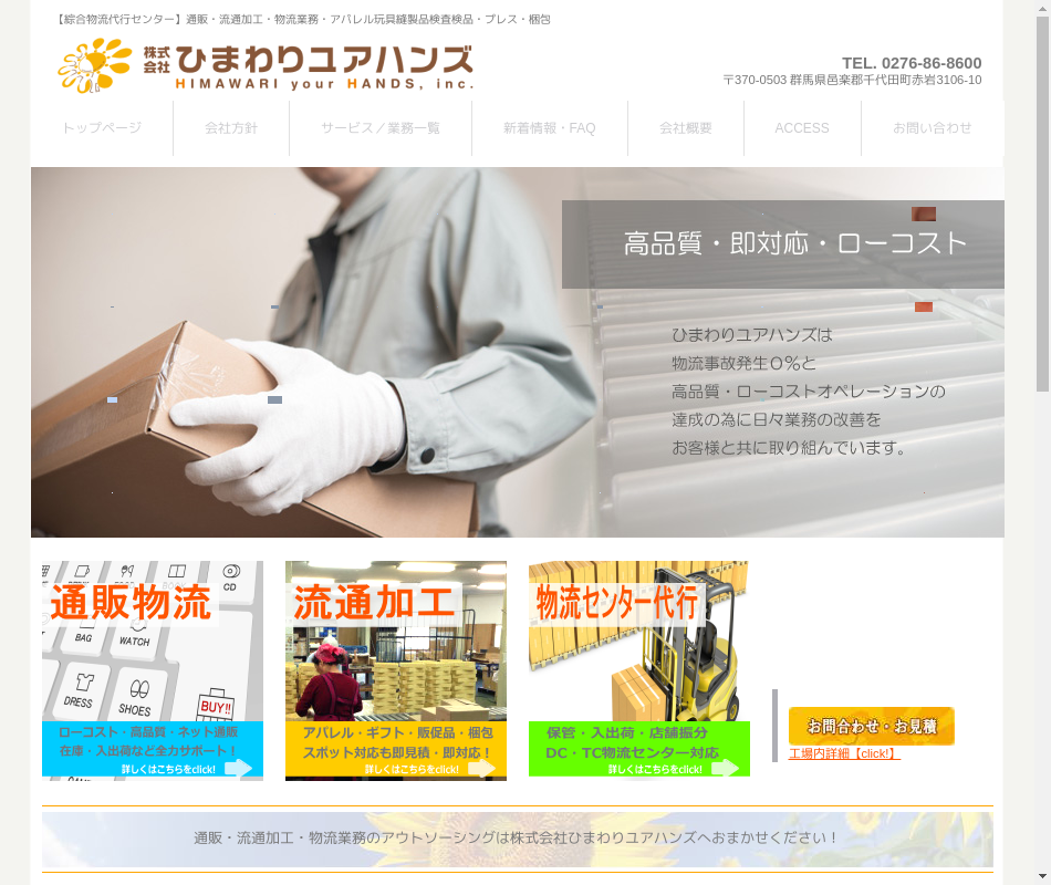 事業内容 | ・衣料品の保管管理から検査、補修、デリバリーの総合物流業務・食品のギフト加工、商品管理、及び出荷作業 |