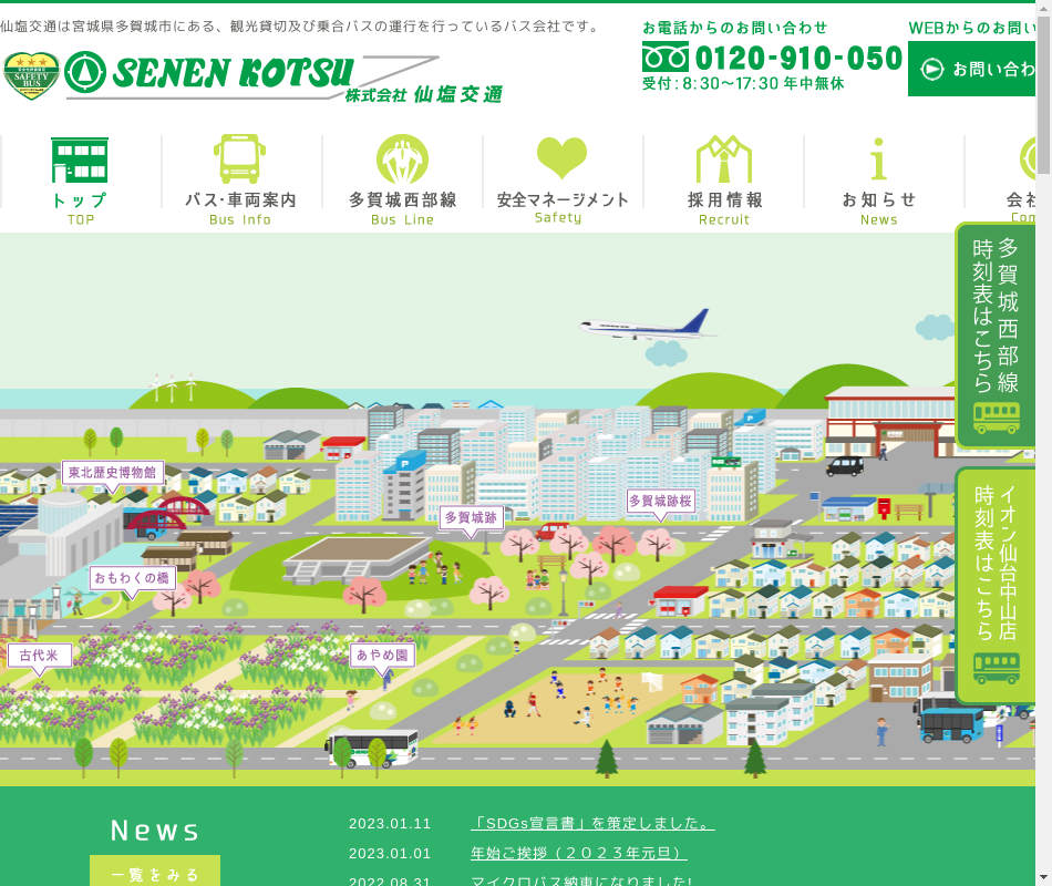 | 事業内容 | 貸切バス事業、一般貸切観光バス、契約輸送貸切バス、業務委託市民バスの運行及び旅行部門で主に国内旅行の取扱いを行っています。 |