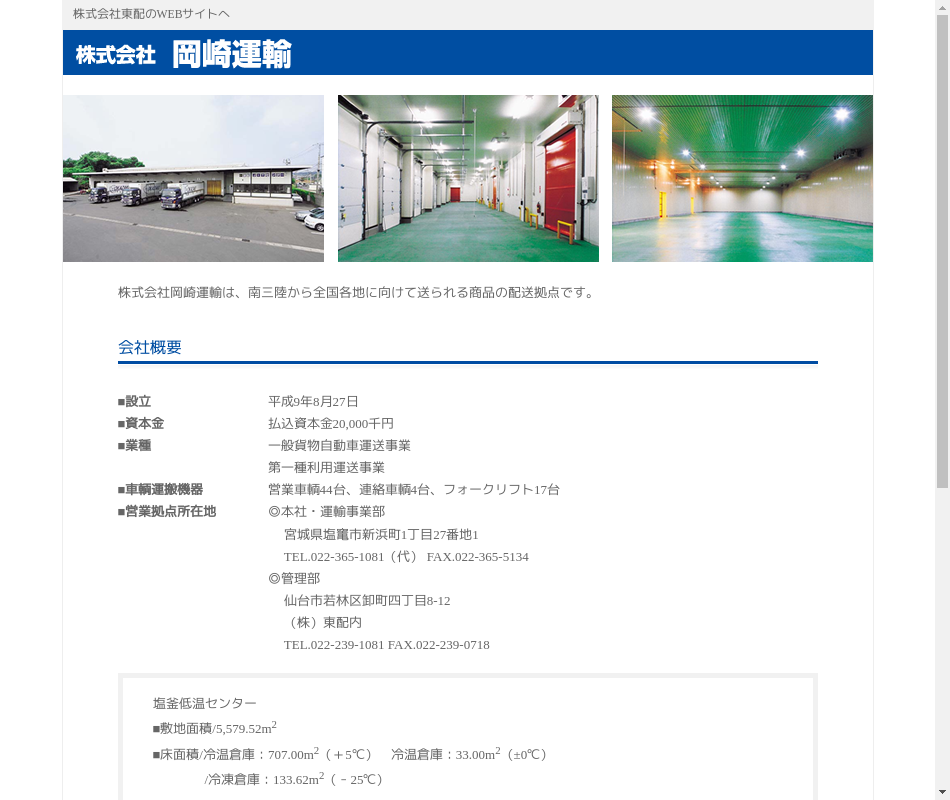 | 事業内容 | 冷凍冷蔵保管業、及び水産物の仕入れ販売業。 |