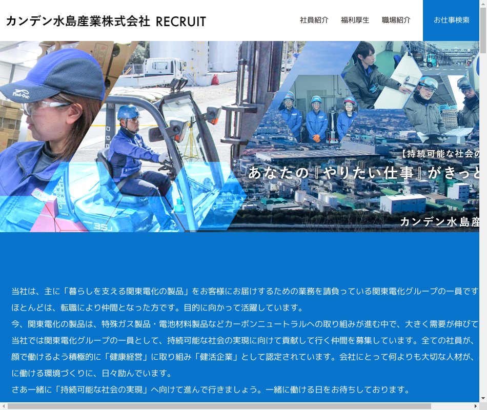 | 事業内容 | 弊社は1981年に関東電化水島工場で設立され、製品分析、運搬、製品充填、構内作業を行っている会社です。十分な教育、作業に従事して頂くので、化学勤務経験のない方でも応募ください。 |