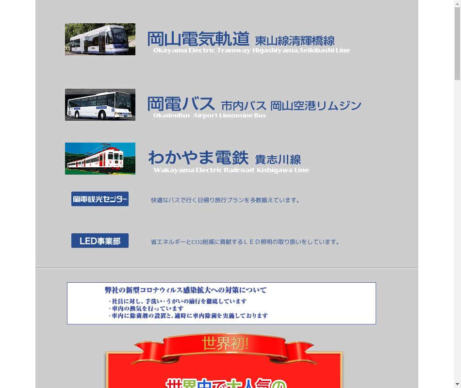 | 事業内容 | 路面電車、乗合バス、貸切バスの旅客運送業及び旅行業、飲食店、一般労働者派遣事業(派33-300039) |
