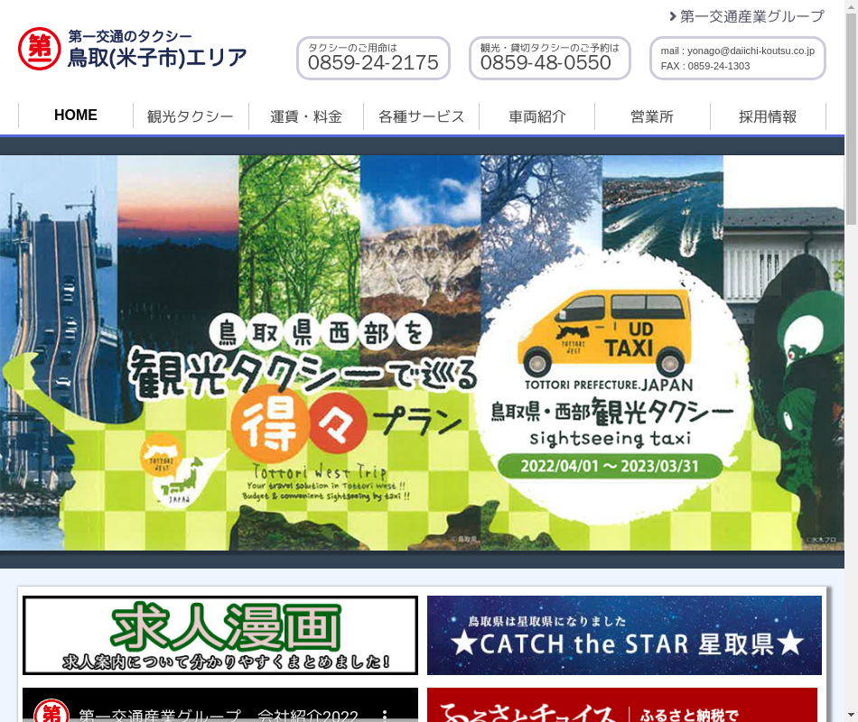 | 事業内容 | 一般乗用旅客自動車運送事業。観光タクシー、ママサポート、お墓参りサポート、通訳サービス提携、24時間代行、鳥取県男女共同参画推進企業等認定、鳥取県イクボス企業として表彰。 |