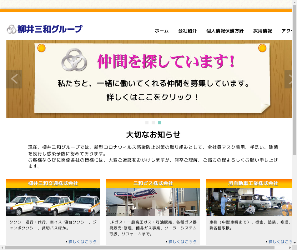 | 事業内容 | 一般乗用旅客運送業 一般乗合旅客運送業タクシー70台(内9人乗りジャンボタクシー5台、ケア輸送車両2台、普通車タクシー63) |