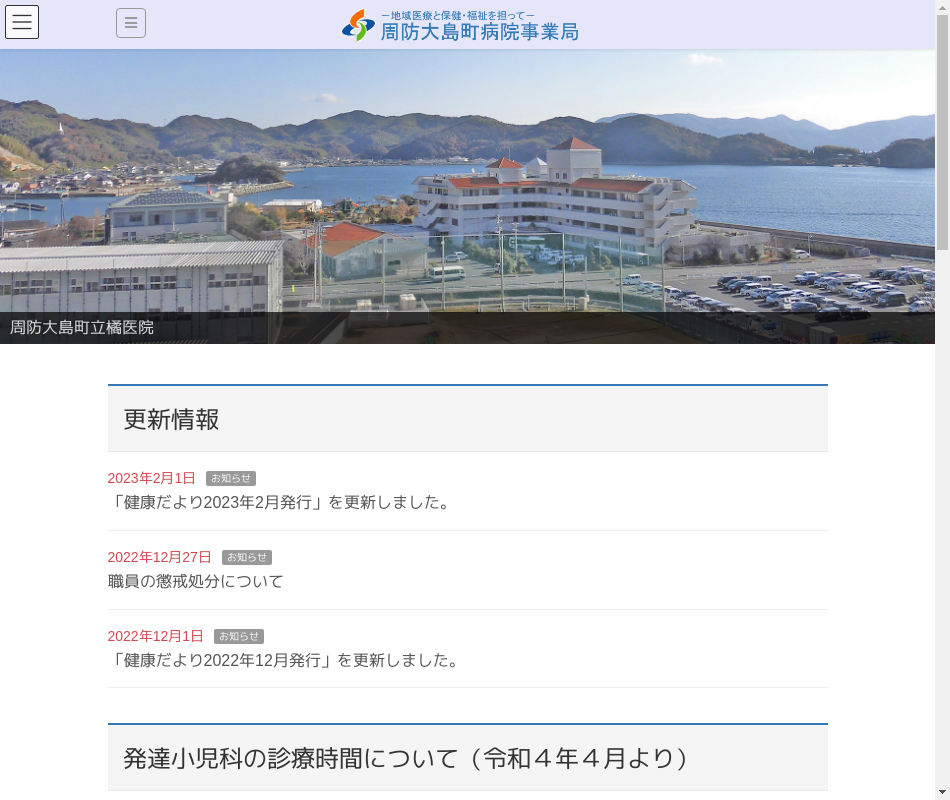 | 事業内容 | 病院事業、看護師養成事業 等 (周防大島町内で2病院・医院・介護老人保健施設・介護医療院・看護専門学校・訪問看護ステーション・3居宅介護支援事業所を運営している地方公共団体である) |