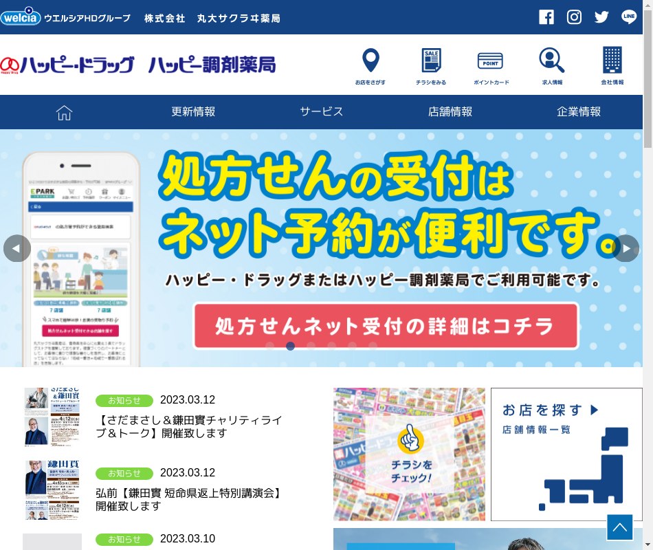 | 事業内容 | お客様の毎日の生活になくてはならない健康づくりドラッグストア「ハッピー・ドラッグ」、調剤専門薬局「ハッピー調剤薬局」の経営と展開を行っています。 |