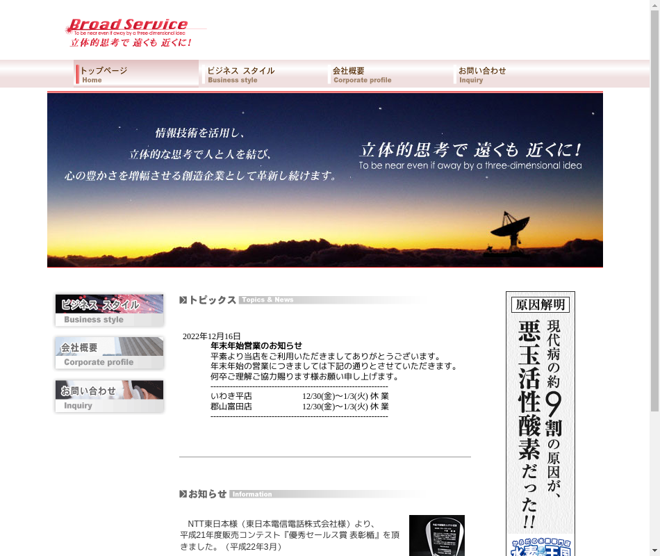 | 事業内容 | ダスキンたいら支店スウイーパー福島、宅配クックワン・ツウー・スリーたいら店ダスキンヘルスレントいわきSТ、ミスタードーナツエブリア店などサービス業を多角的に展開しています。 01 |