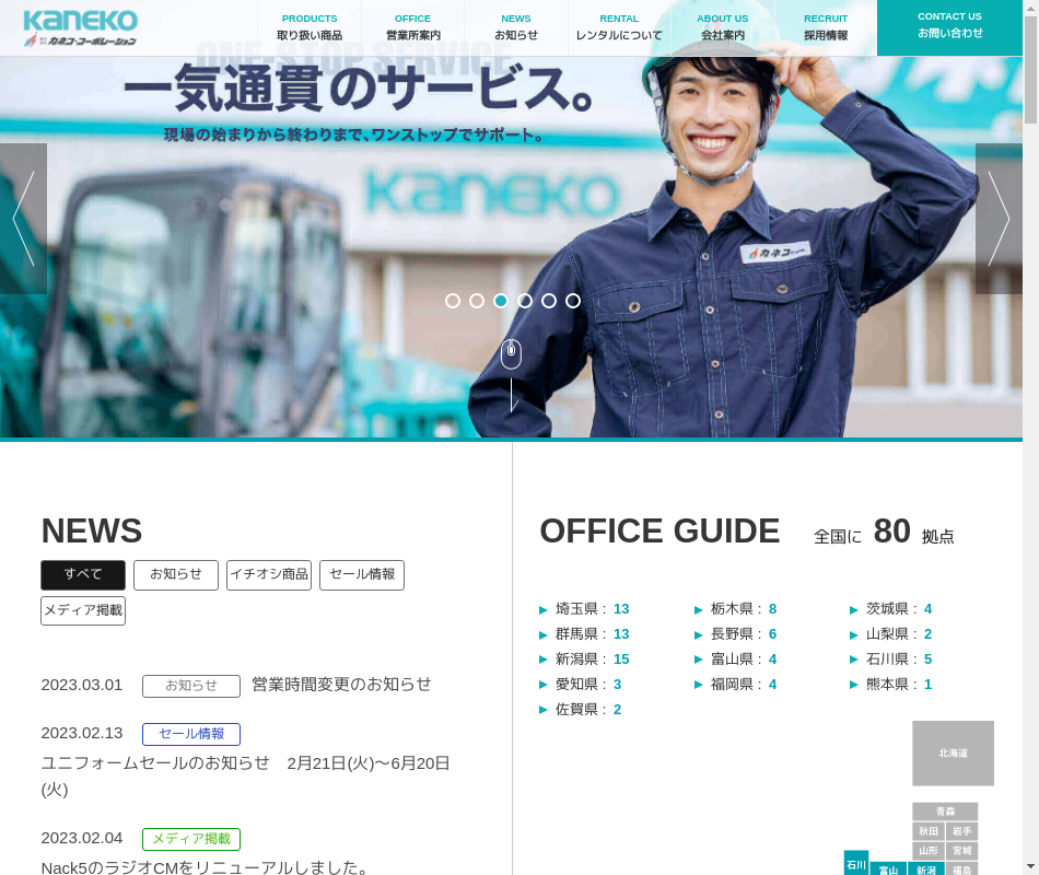 事業内容 | 建設機器・レンタカー・OA機器等のレンタル・販売・修理。工事現場に欠かすことのできない様々な商品のレンタル事業を通じて地域社会のインフラ整備、建設事業を支えています。 |