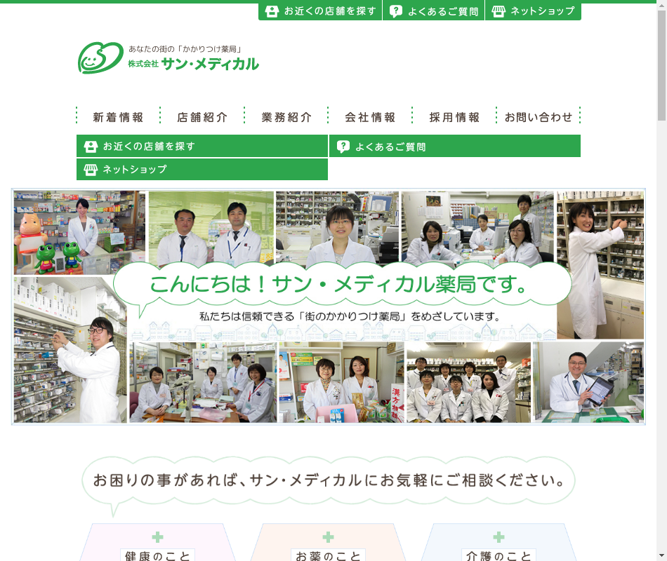 事業内容 | 処方せんによる調剤、OTC、介護用品、レンタル、販売業務適用事業所番号;3405-300226-3 |