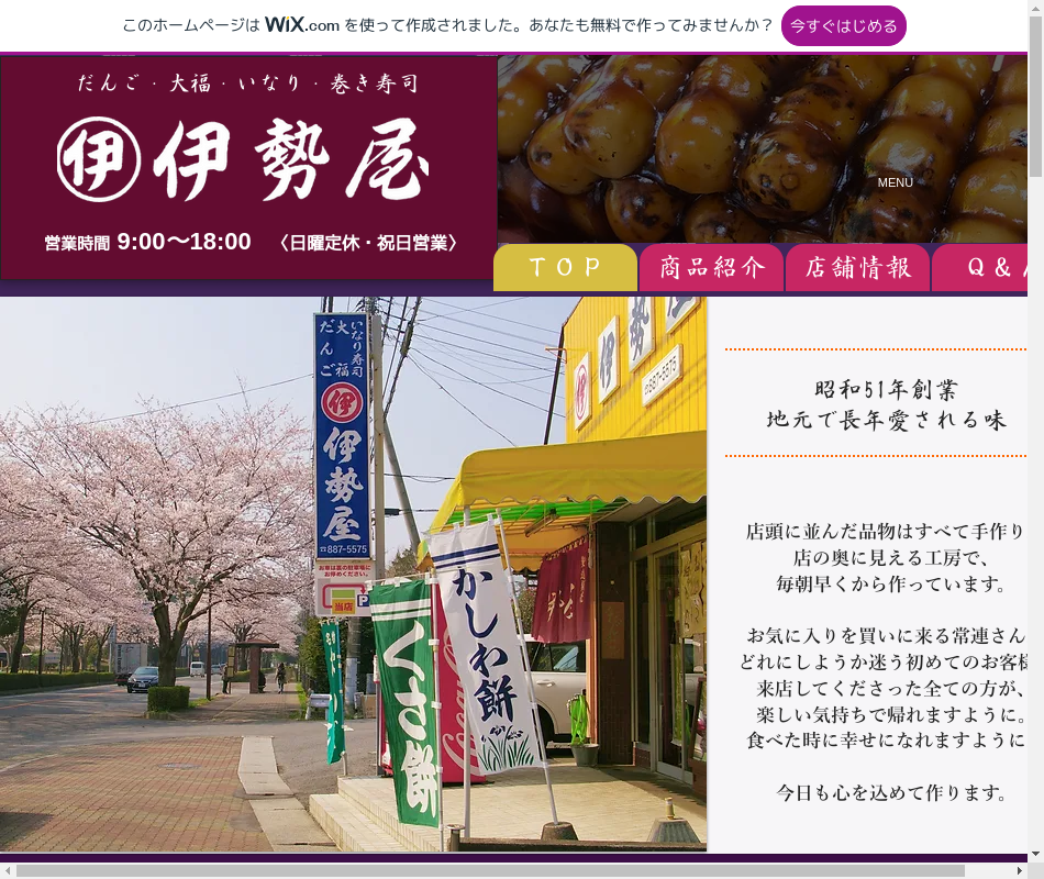 | 事業内容 | 団子・大福・まんじゅう・いなり・巻き寿司・おにぎり・慶弔菓子・のし餅等、和菓子やご飯物を販売しています。商品は全て店内で手作り。店頭に並んだ品物をお客様の要望に応じてお包みします。 |