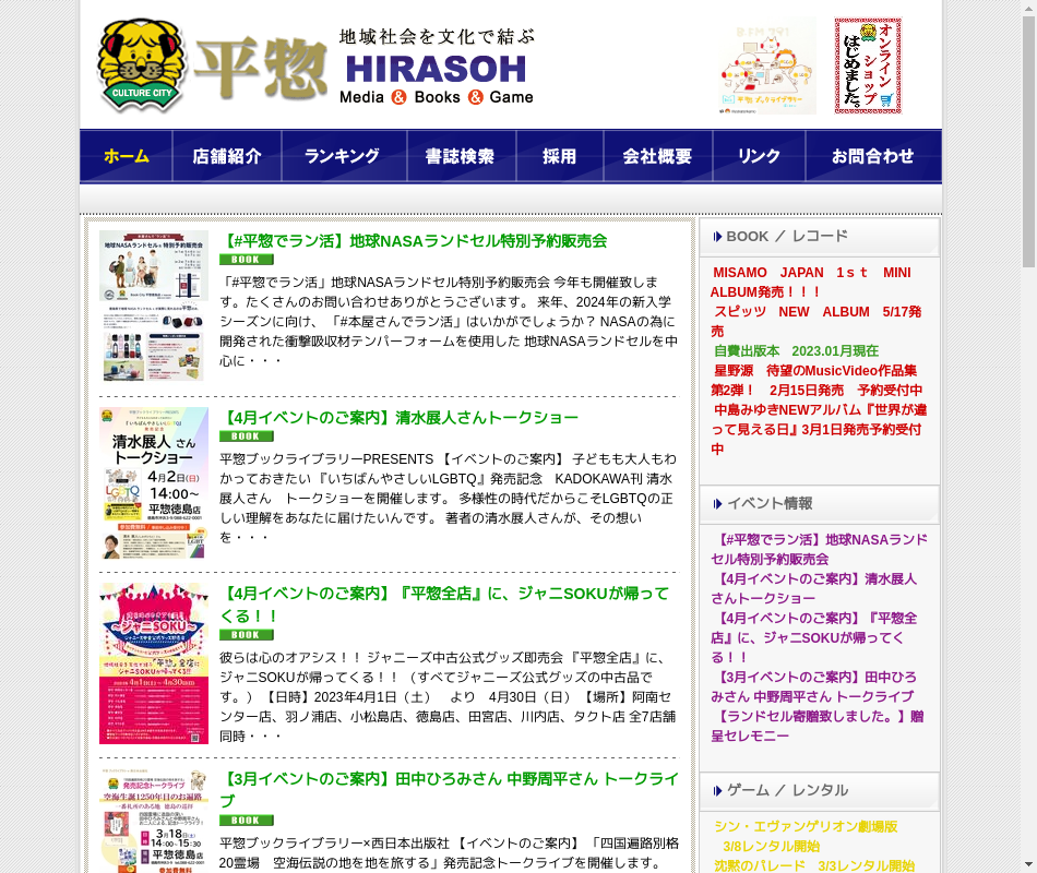 | 事業内容 | 書籍、雑誌、CD、ビデオの販売。CD、ビデオのレンタル業。 ひ-18 |