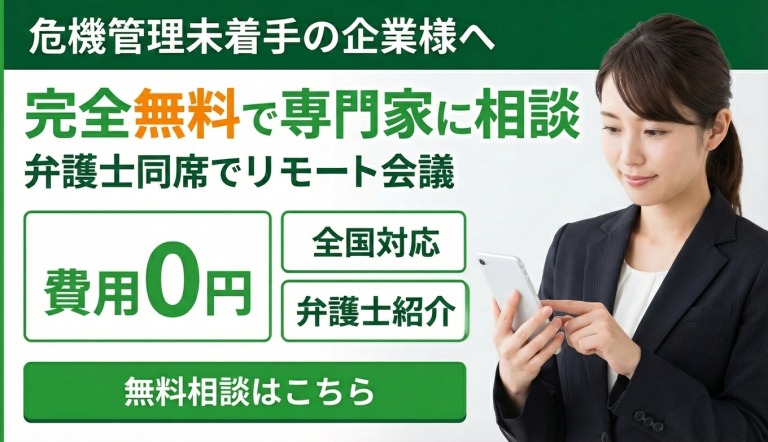 危機の被害を最小化させる「危機管理マニュアル」の整備は、最低限のリスクマネジメントであり、企業には不可欠です。